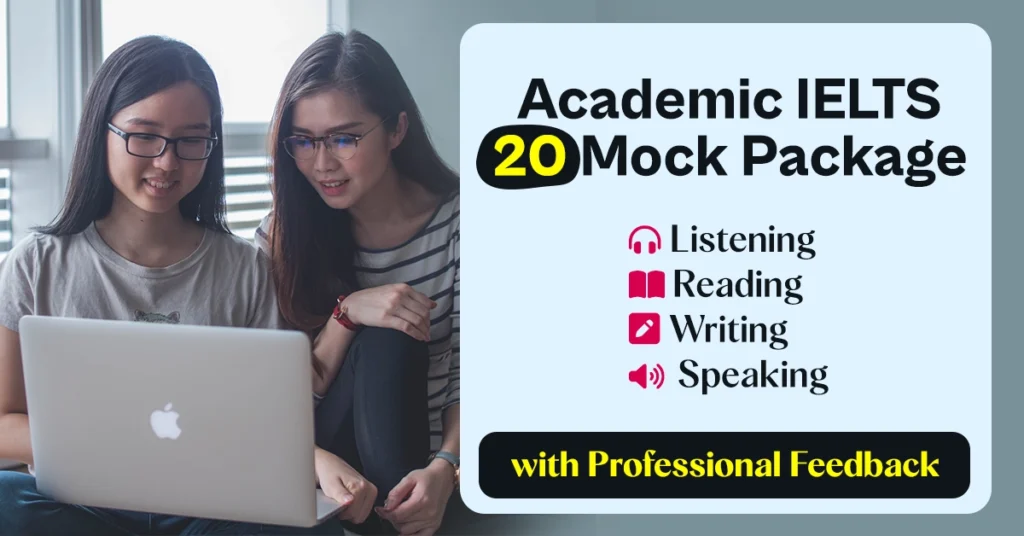 Take this fully simulated professional mock test online and assess your current readiness to take the actual IELTS test. You’ll receive detailed explanations for all the Reading and Listening answers, as well as expert feedback on the Writing and Speaking modules!